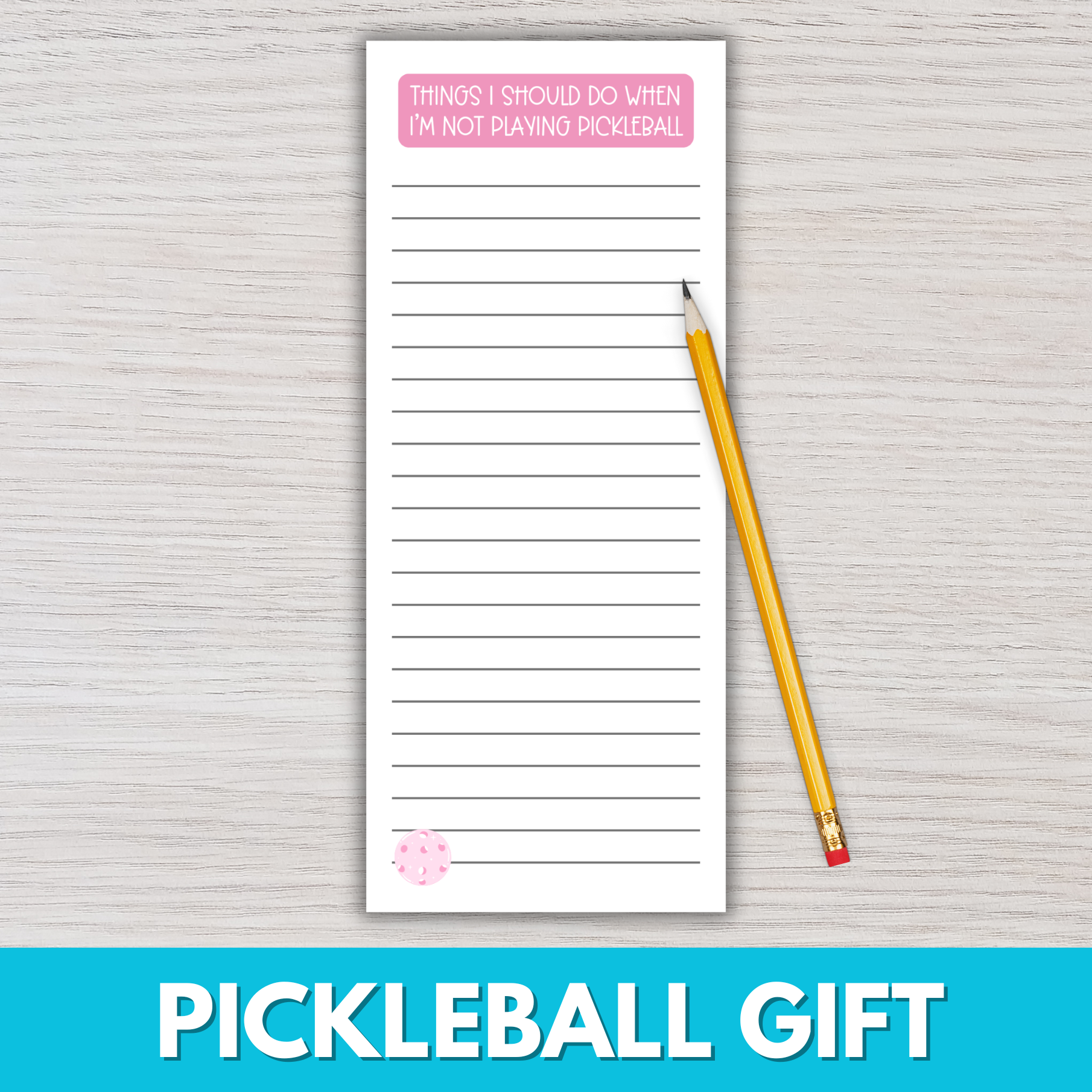 Each notepad features a playful splash of pink and the phrase “Things I Should Do When I’m Not Playing Pickleball” in bold, happy lettering, paired with a cute pink pickleball graphic. It’s the little reminder every player needs - because we all know the court is always calling!